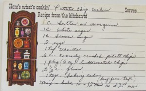 This recipe may sound a little weird, but I guarantee you’ll love it! The potato chips add just enough saltiness to balance the sweetness of the butterscotch chips! Beulah, my mom, created a cookie tradition when she introduced this recipe into her cookie archive! It’s a childhood favorite of her granddaughter, Angela as well as the rest of the family!