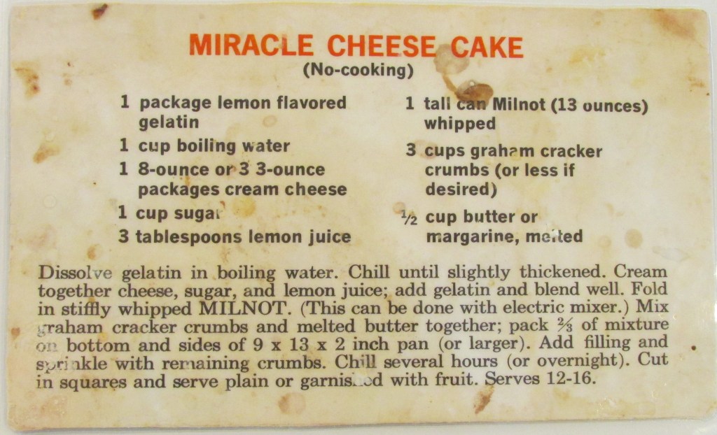 In doing a little research for this blog post, I was surprised to learn that my Mom’s Miracle Cheesecake has a fascinating culinary history. This no-bake cheesecake was apparently the signature dish at Woolworths lunch counters all over the country! These lunch counters have an important connection to the Civil Rights struggles of the 1960s. The lunch counters were the site of nonviolent sit-ins in Greensboro, North Carolina which led to Woolworths removing its policy of racial segregation in the Southern United States. Interesting, right?