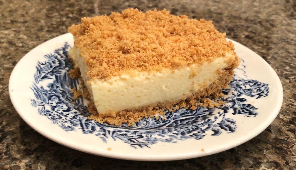 The Miracle Cheesecake is a light-as-air lemon confection. This iconic dessert is comprised of two parts: the graham cracker crust/topping and the delicious cheesecake filling. A major component of the filling is Milnot Evaporated Milk, an old-fashioned product not commonly used but still available on supermarket shelves. Important note about this step-the Milnot will whip up much fluffier and the dessert will be much lighter when its at room temperature. Do not refrigerate before whipping! I hope you’ll give this recipe for Miracle Cheesecake a try!