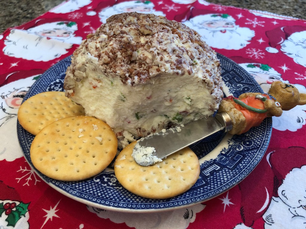 I make this cheese ball recipe for New Year’s Eve every year without fail. I got the recipe from my sister Marilyn Sue Marlow Gerlach and it always brings back very fond memories of the very first New Year’s Eve party I ever attended. I was staying with my sister and her husband Willis, as I often did when I was a kid. I was so excited when I learned that they would be hosting a couples party for New Year’s Eve. Before that time, the only NYE events I had ever attended had been rather somber events at our church. Nice, but not exactly festive! My memories of that NYE party are a little hazy, but I definitely recall a Christmas tree, music on the record player and a pretty buffet table, featuring this cheese ball and chips and dip. By the way, that was my first experience with chip dip! It was love at first bite, starting an affair that continues to this day.