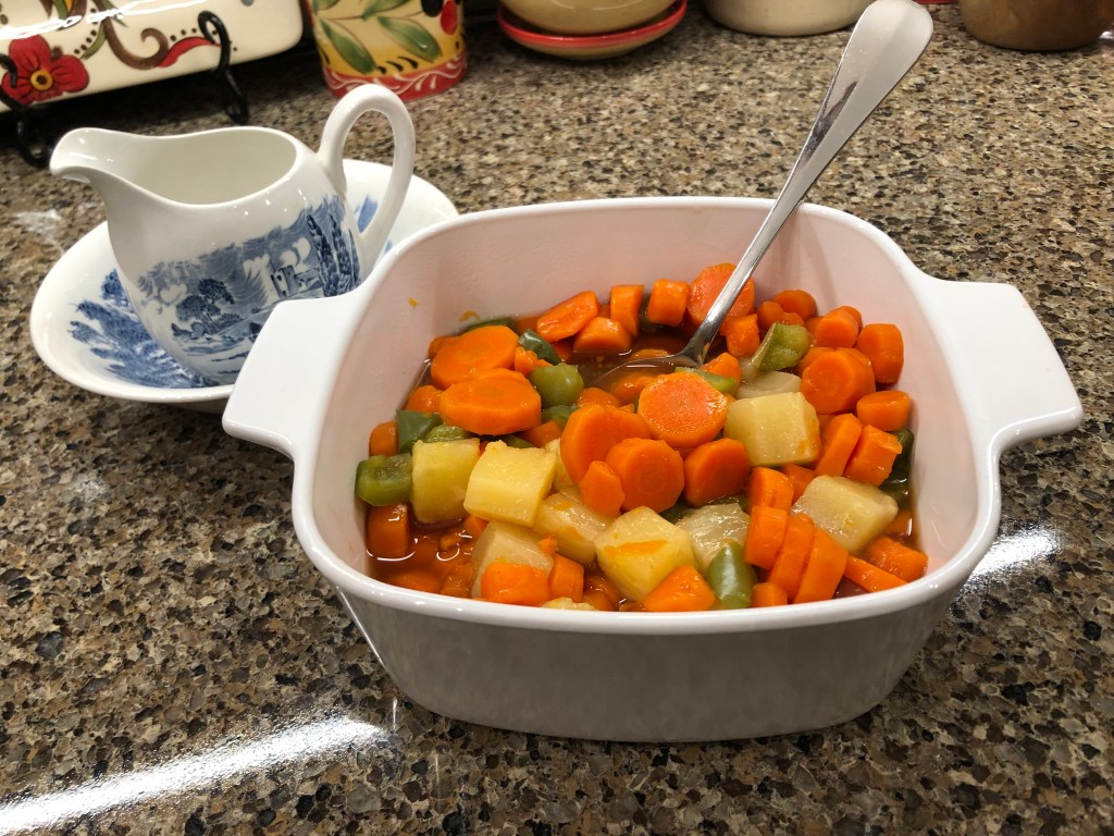 There’s nothing like a church potluck to inspire me to thumb through my collection of favorite recipes, many of which were specialties of my Mom Beulah and my Mother-in-law Jane. When the date for our 2019 church Thanksgiving dinner was announced, I immediately went to these two tried-and-true potluck favorites. The Corn Casserole came from Jane’s recipe collection. The Sweet and Sour Carrots are from my Mom Beulah by way of my cousin Barb Valier. Barb attends the church where I grew up, Nine Mile Baptist Church in Tamaroa, Illinois, and this was a very popular dish at all the many church potlucks there in the 1970s. Guess that makes it a true recipe classic. Both recipes are equally yummy and I hope you’ll give them a try.